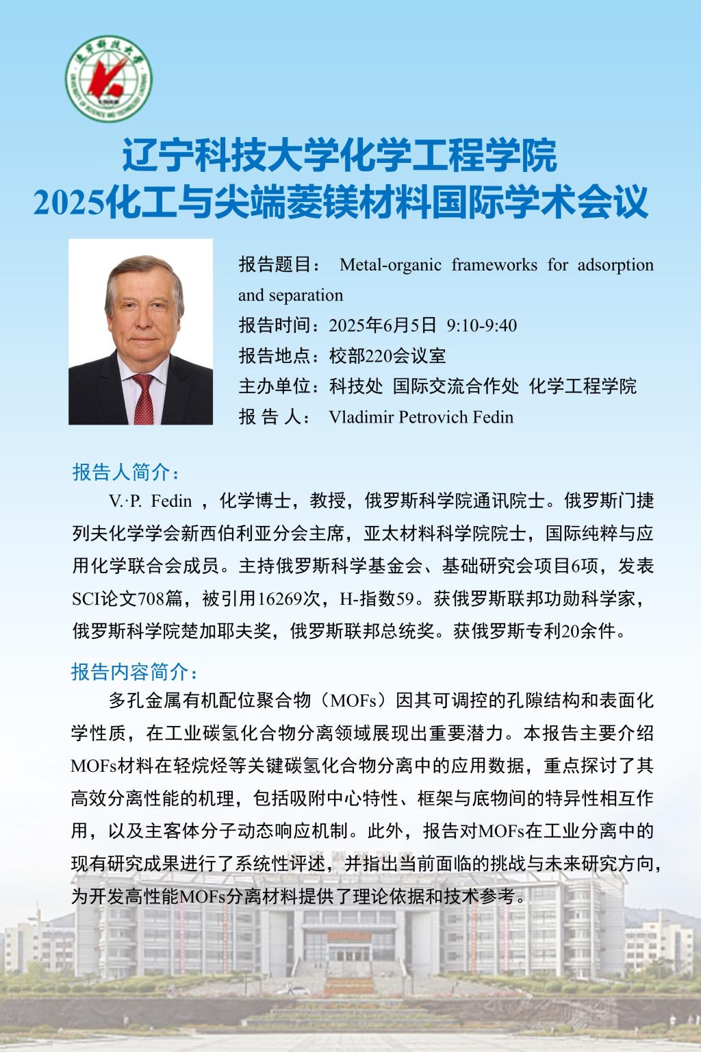 【科技活动周学术预告】2025化工与尖端菱镁材料国际学术会议