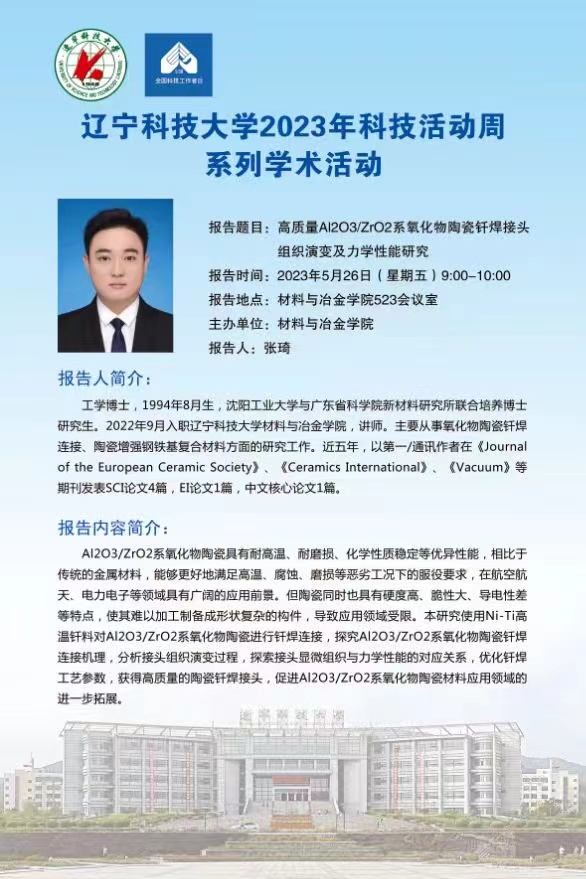 【科技活动周学术预告】高质量Al2O3/ZrO2系氧化物陶瓷钎焊接头组织演变及力学性能研究-辽宁科技 - 九九精品视频一区在线久久久久久久久久毛片精品美女|国产99久久久久久免费看|中文精品99久久国产|国产69精品久久久久9999|精品久久久久久中文字幕无码|亚洲熟妇无码久久精品国产精品99|精品国产天堂综合一区在线官网