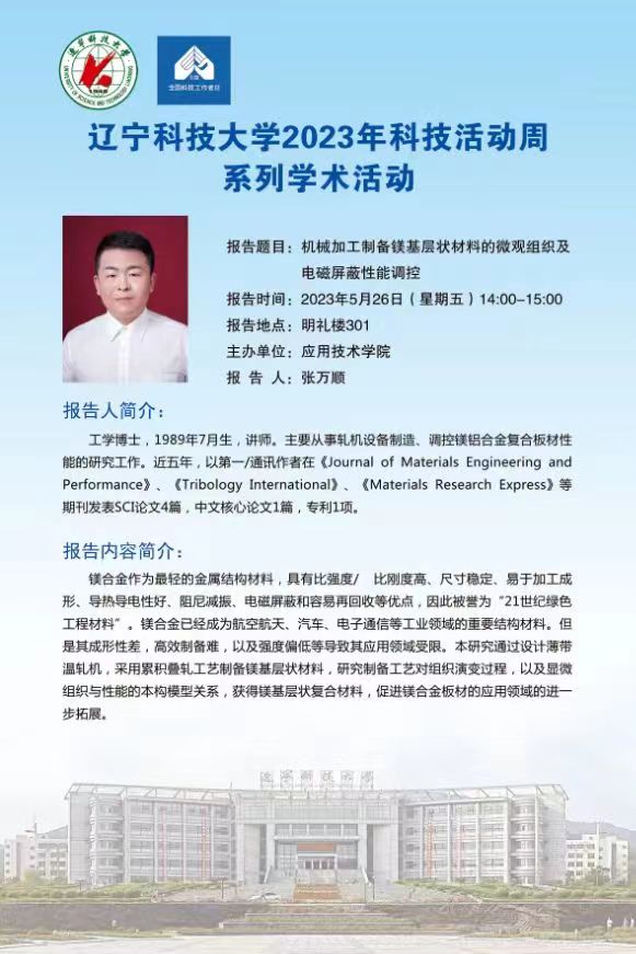 【科技活动周学术预告】机械加工制备镁基层状材料的微观组织及电磁屏蔽性能调控-辽宁科技 - 九九精品视频一区在线久久久久久久久久毛片精品美女|国产99久久久久久免费看|中文精品99久久国产|国产69精品久久久久9999|精品久久久久久中文字幕无码|亚洲熟妇无码久久精品国产精品99|精品国产天堂综合一区在线官网