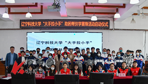 仪式上,宣读了材冶学院学生材控党支部在鞍山市第38中学设立“贫寒学子突出进步奖学金”的助困帮扶计划。材冶学院20名志愿者对接38中学20名家庭经济困难学生,为他们捐赠书包等学习用品,后续将为其提供学业以及生活上的精准帮扶。